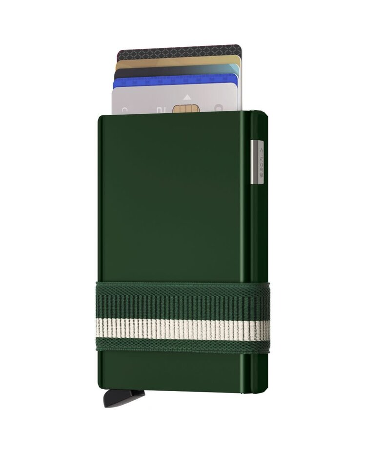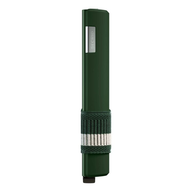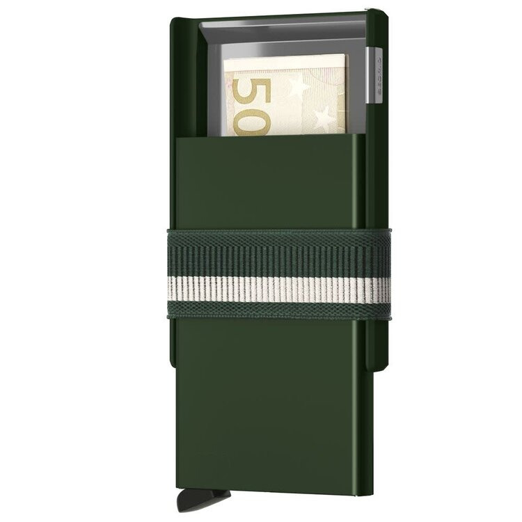 The Secrid Cardslide is a modular wallet consisting of an aluminum RFID-blocking Cardprotector and a Slide, held together by a Moneyband.