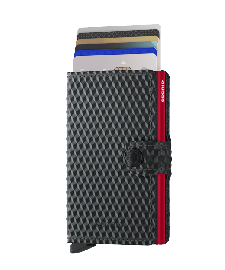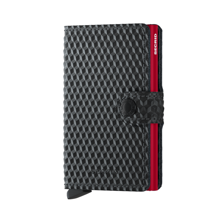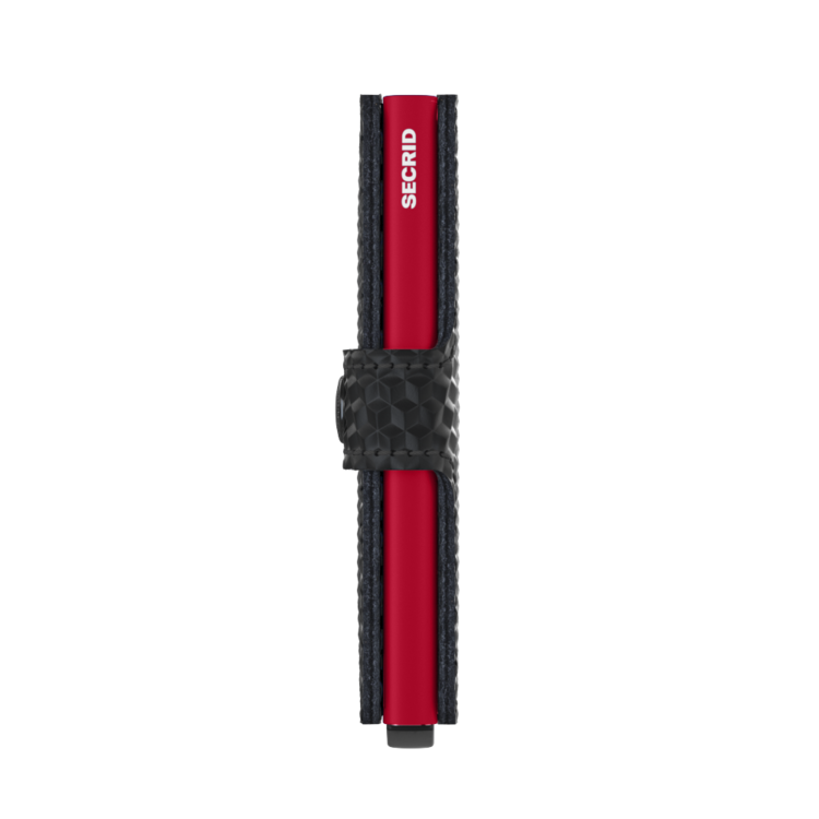 Miniwallet Cubic Black-Red is corrected-grain leather with 3D embossing, made in Italy from European cowhide.