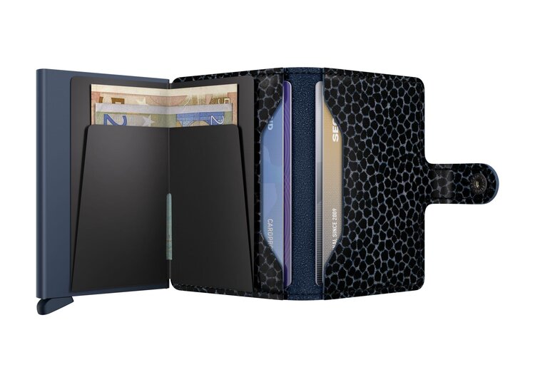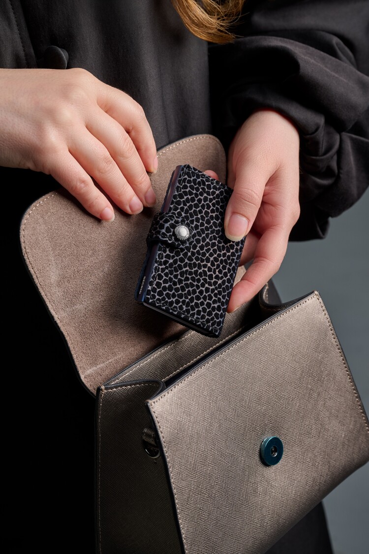 Small in size and surprisingly large in storage capacity, the Miniwallet combines the best of both worlds. The exterior holds banknotes, receipt and cards, while the aluminium Cardprotector allows you to slide out cards with one simple motion and protects them from bending, breaking and unwanted wireless communication.