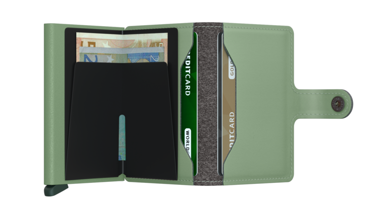 The Miniwallet Yard Powder Pistachio is combination of the Cardprotector Powder and a microfibre that is engineered to replace leather. With a unique touch, it’s as durable as it is unique. Produced in Germany and assembled in Holland.