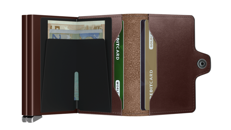 With two Cardprotectors to hold double the content, the Twinwallet carries up to 16 cards, banknotes and receipts while remaining compact in size. The patented mechanism allows you to slide out your cards with one simple motion, ready for immediate use. The aluminum protects from bending, breaking and unwanted wireless communication (RFID Protection).