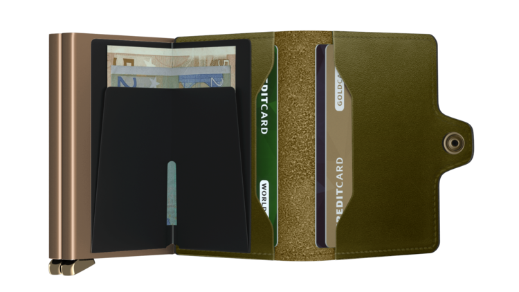 With two Cardprotectors to hold double the content, the Twinwallet carries up to 16 cards, banknotes and receipts while remaining compact in size. The patented mechanism allows you to slide out your cards with one simple motion, ready for immediate use. The aluminum protects from bending, breaking and unwanted wireless communication (RFID Protection).