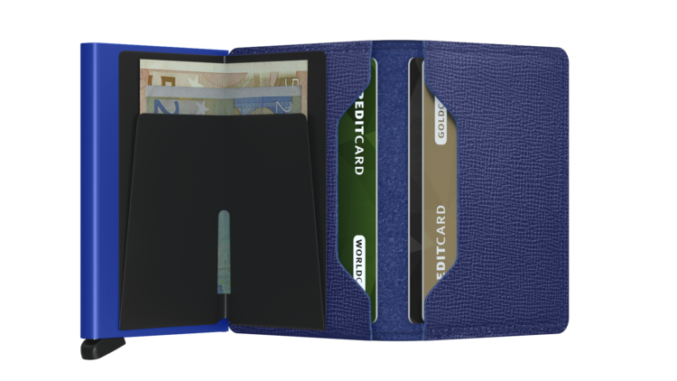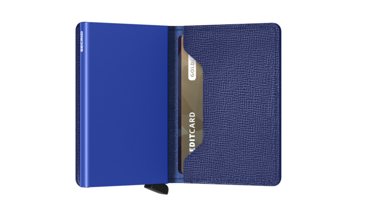 Embossed with a fine Saffiano print, Slimwallet Crisple Cobalt ensures a long-lasting feeling of luxury. This leather is resistant to staining and scratching.