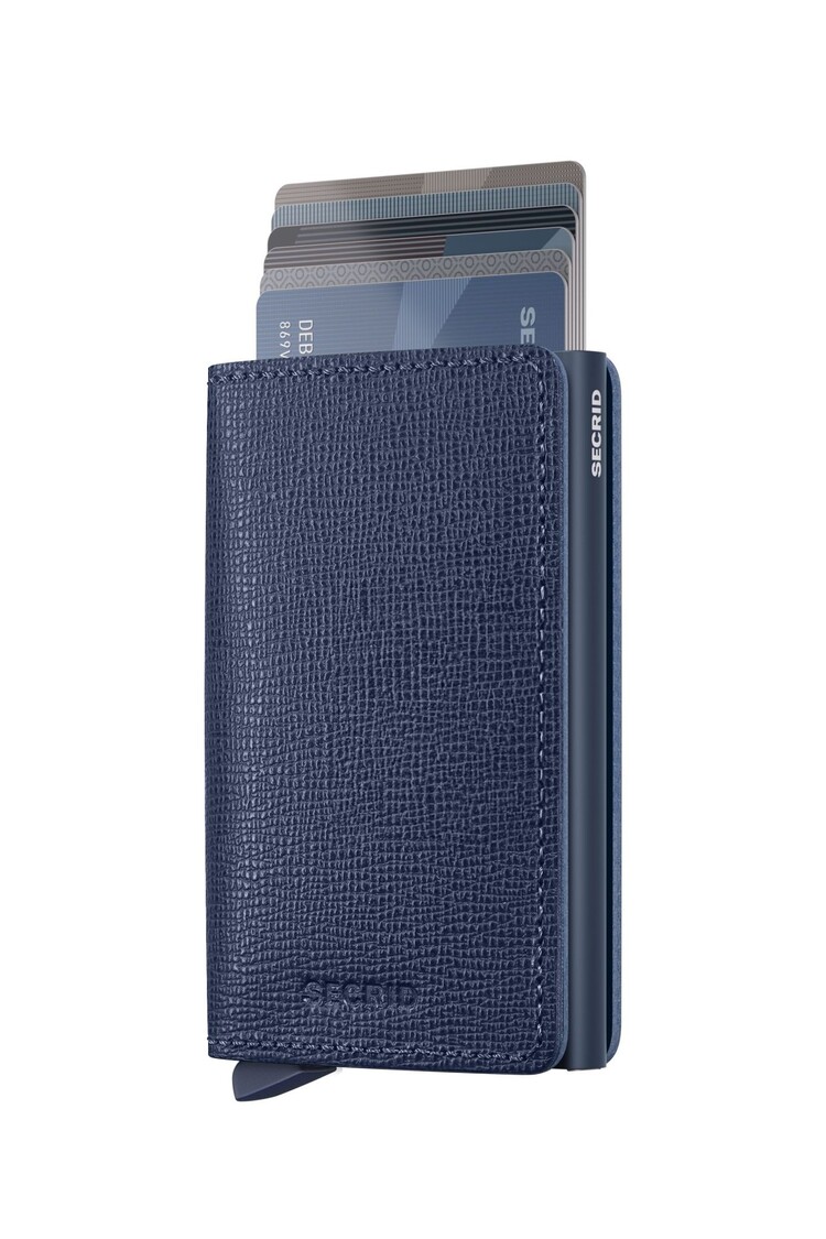 The patented mechanism allows you to slide out your cards with one simple motion, ready for immediate use. The aluminium protects from bending, breaking and unwanted wireless communication.