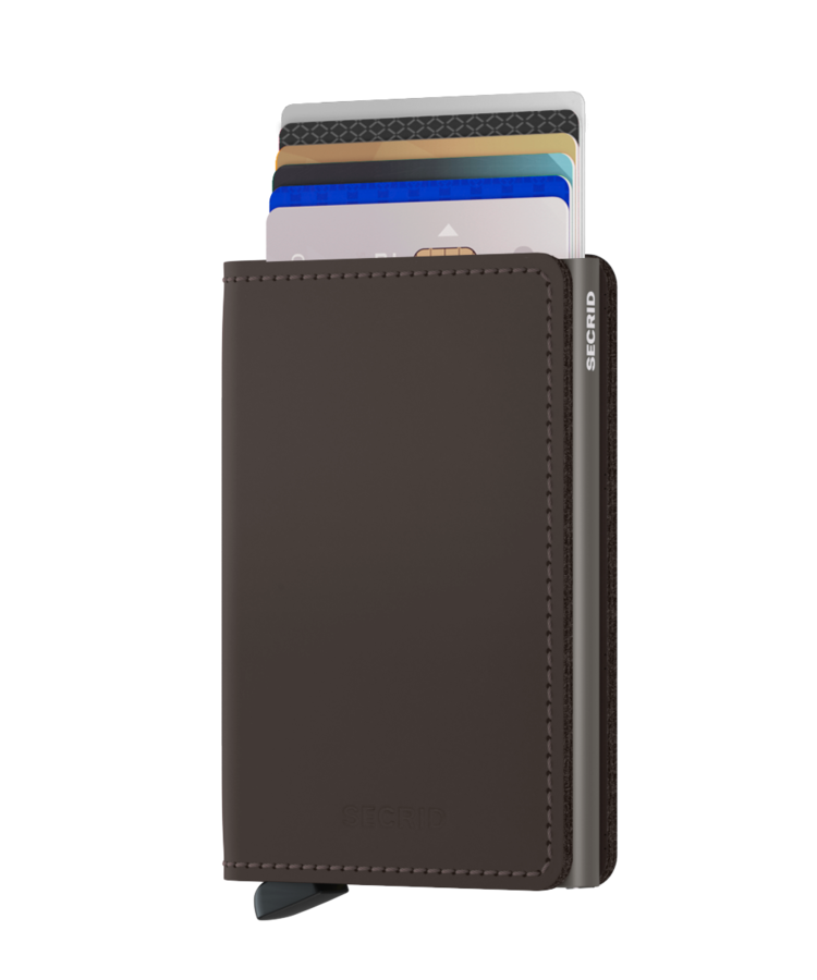 Secrid Slimwallet is a modern take on the classic billfold. With its slim profile it fits perfectly into every pocket. The generously cut leather holds at least an additional six cards, banknotes and business cards.