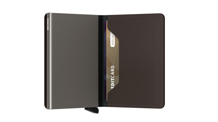 The patented mechanism allows you to slide out your cards with one simple motion, ready for immediate use. The aluminium protects from bending, breaking and unwanted wireless communication.