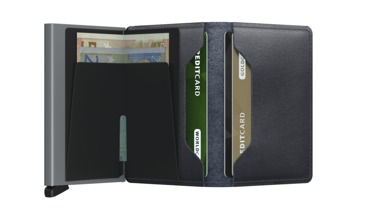 The patented mechanism allows you to slide out your cards with one simple motion, ready for immediate use. The aluminium protects from bending, breaking and unwanted wireless communication.