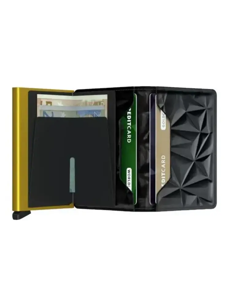 Its slim profile makes the Slimwallet fit perfectly into every pocket. The open exterior is cut extra wide to hold cards, banknotes and receipts. The Cardprotector mechanism allows you to slide out cards with one simple motion, while the aluminium protects your cards from bending, breaking and unwanted wireless communication.Holds