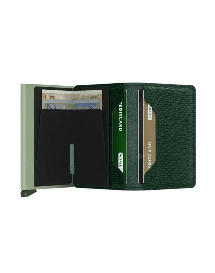 Its slim profile makes the Slimwallet fit perfectly into every pocket. The open exterior is cut extra wide to hold cards, banknotes and receipts. The Cardprotector mechanism allows you to slide out cards with one simple motion, while the aluminium protects your cards from bending, breaking and unwanted wireless communication.Holds
