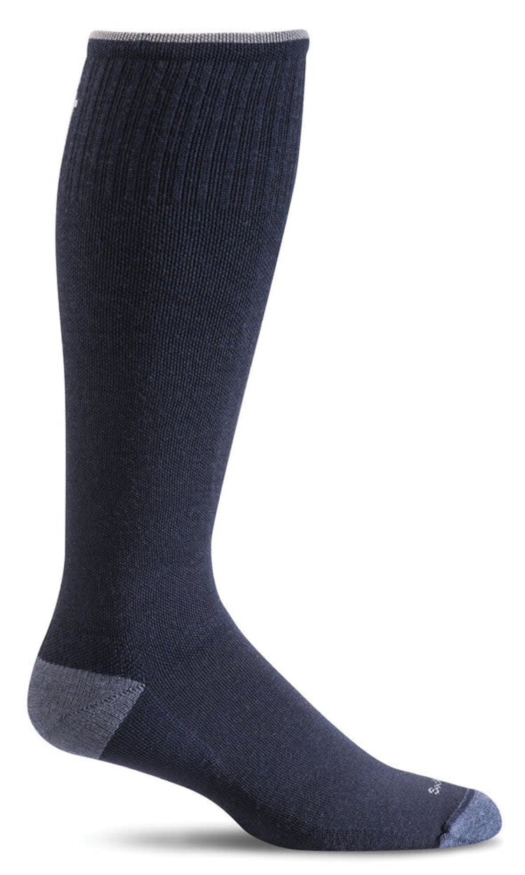 Step out in comfort with graduated compression socks for better circulation and faster recovery. Our mens Elevation Lifestyle Compression socks feature a firm (20-30 mmHg) graduated compression level throughout the leg, an ultra-light cushion sole, arch support, seamless toe closure, and turn welt top.