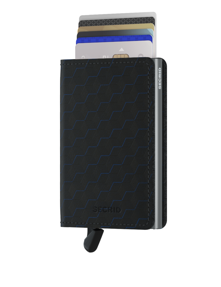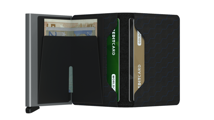 Slimwallet Optical Black-Titanium is from corrected-grain leather, made in Germany from European cowhide.