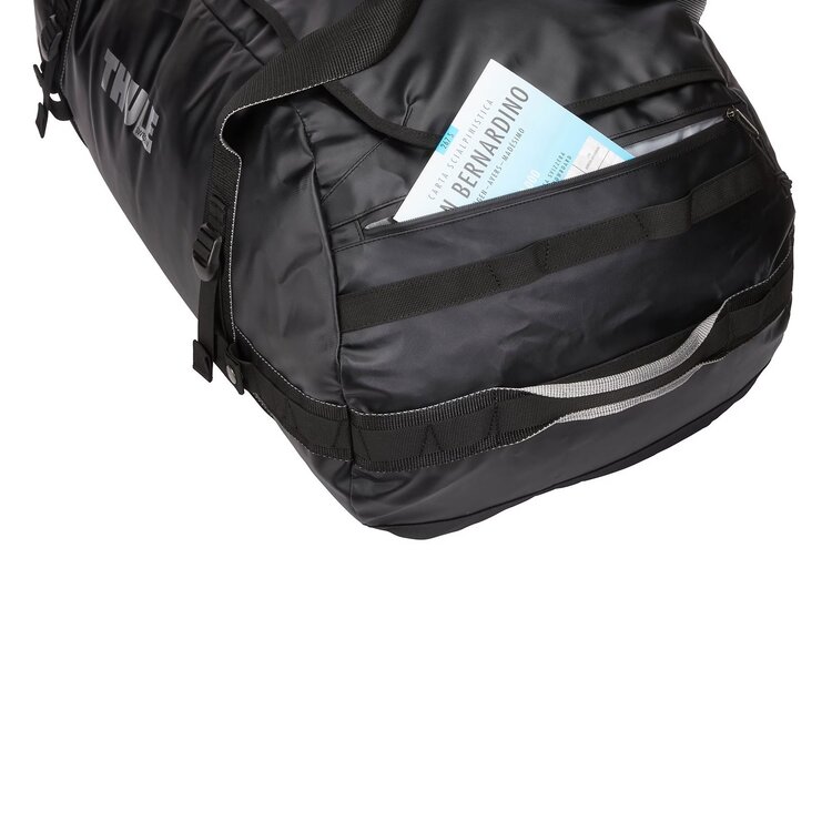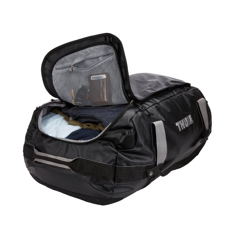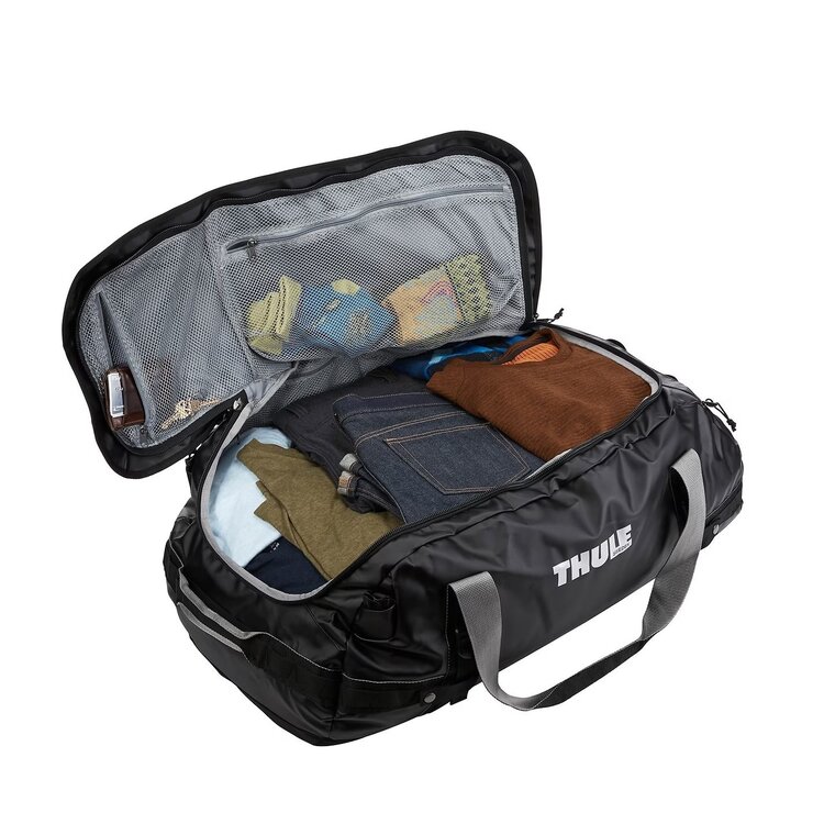The internal mesh pockets help you organize your things while the wide mouth opening makes it easy to pack all your gear. The durable, weather-resistant tarpaulin fabric and padded bottom helps protect your items from tough conditions. Thule Chasm is a rough-and-ready duffel bag that can be thrown into your trunk or roof box, perfect for road trips, overlanding, and other far-flung adventures.