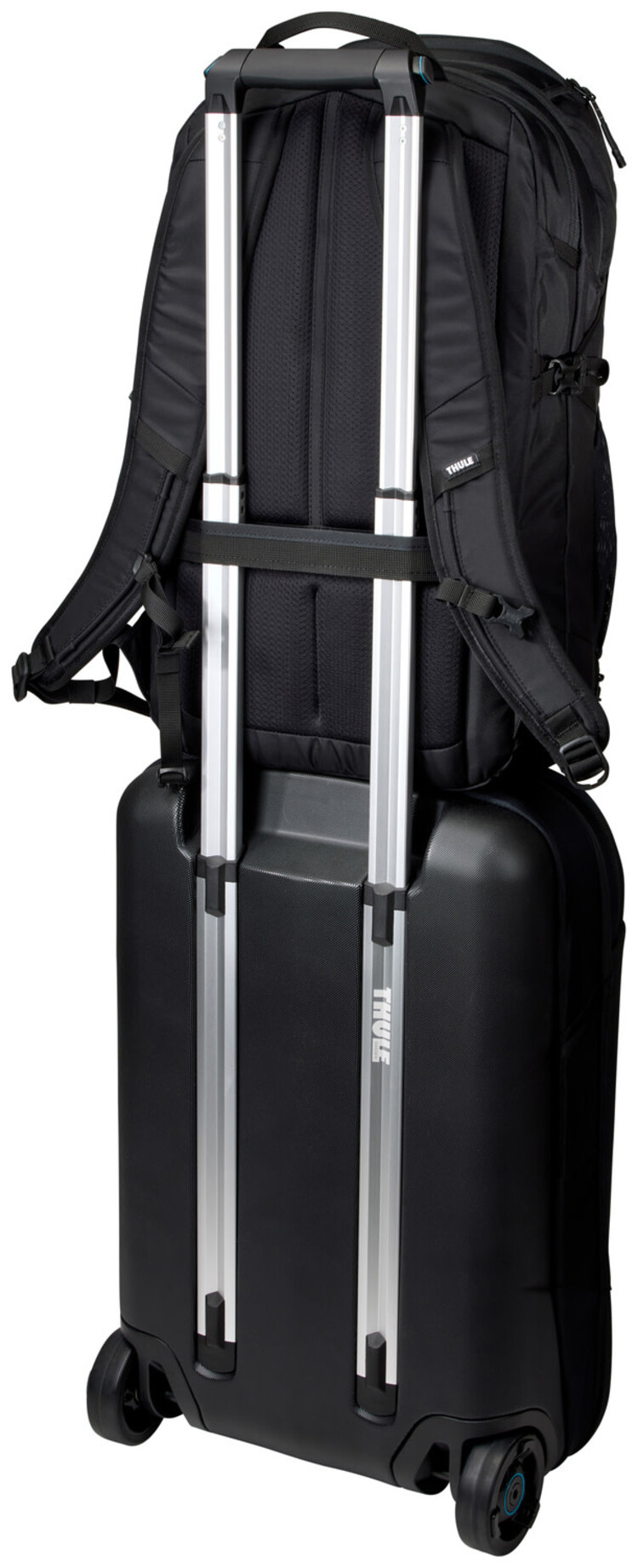 Pass-through panel enables you to attach the backpack to rolling luggage for easier travel