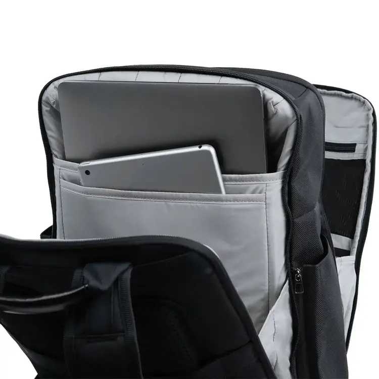 Stay connected to everything you need using external USB A and C ports (Patent Pending) with fast charge capabilities to power up electronics on the go. A dedicated pocket with connected USB cord stores your power bank securely (battery not included), padded laptop and tablet sleeves offer protection for electronics, and the spacious interior is also outfitted with compartments and integrated key leash for built-in organization.