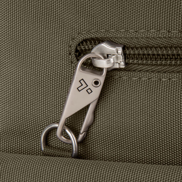 • Tethered key clip with LED light in main compartment