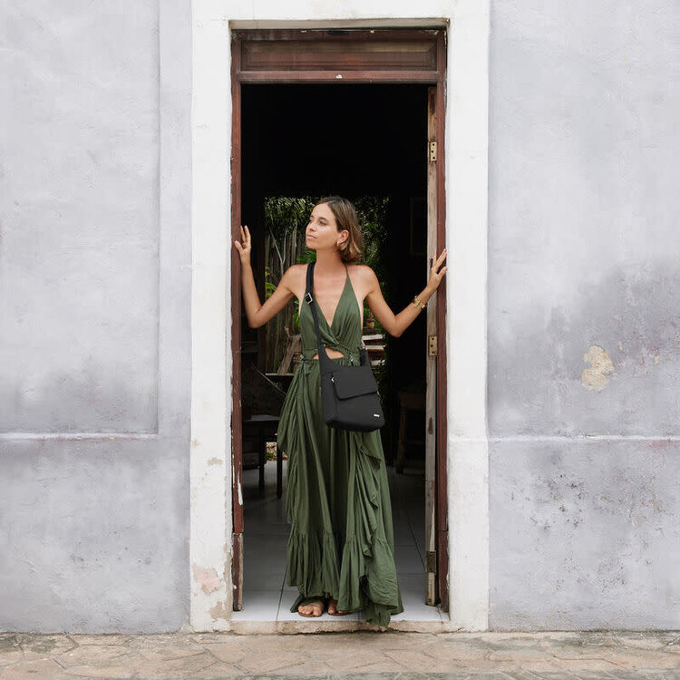 Tried and true, no other travel bag or Anti-Theft bag collection enjoys the level of loyalty Travelon Classic does. From timeless and versatile design, colors that pair with any wardrobe, quality materials and craftsmanship, renowned security features and thoughtful organization. The Classic Messenger will carry and keep more items organized than everyday bags. Durable, water and dirt resistant this bag features Travelon’s patented Anti-theft security system to protect you from pickpockets and thieves. It includes a slash-resistant mesh inner lining in all 4 sides and bottom body panels; slash-resistant strap; locking compartments; and RFID blocking organizer for credit cards, passport and other sensitive information you are carrying. Travel with style and security.