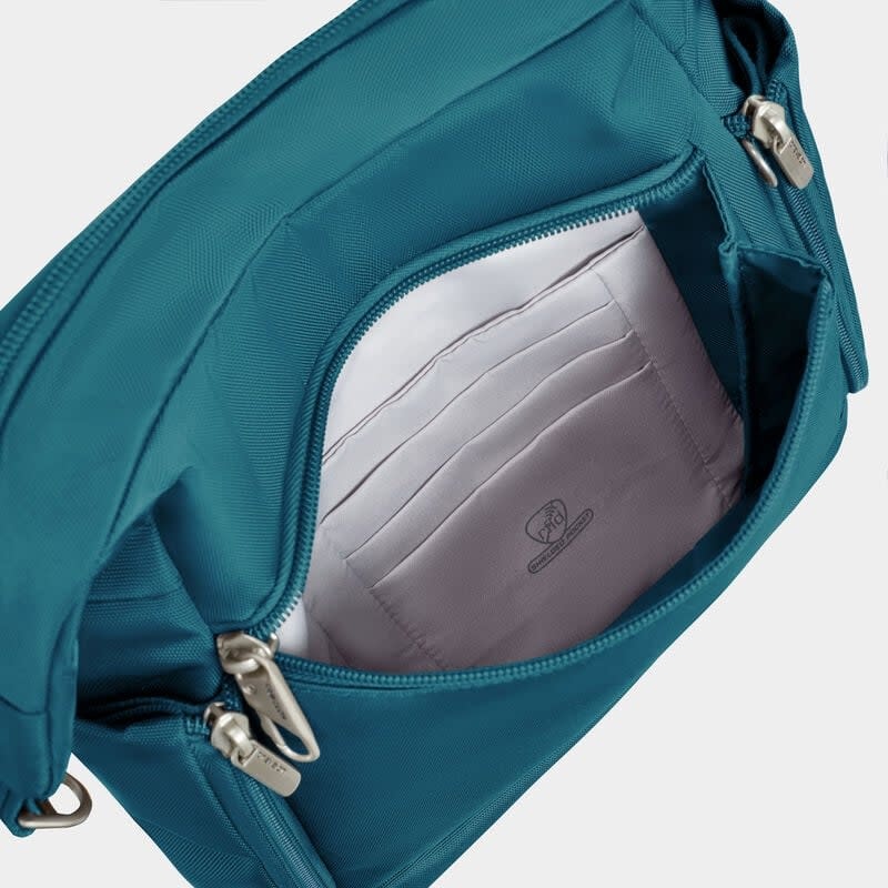 Tried and true, no other travel bag or Anti-Theft bag collection enjoys the level of loyalty Travelon Classic does. From timeless and versatile design, colors that pair with any wardrobe, quality materials and craftsmanship, renowned security features and thoughtful organization. The Classic Messenger will carry and keep more items organized than everyday bags. Durable, water and dirt resistant this bag features Travelon’s patented Anti-theft security system to protect you from pickpockets and thieves. It includes a slash-resistant mesh inner lining in all 4 sides and bottom body panels; slash-resistant strap; locking compartments; and RFID blocking organizer for credit cards, passport and other sensitive information you are carrying. Travel with style and security.