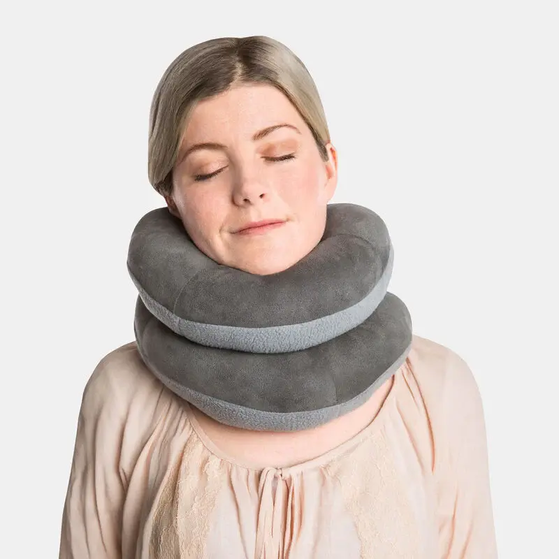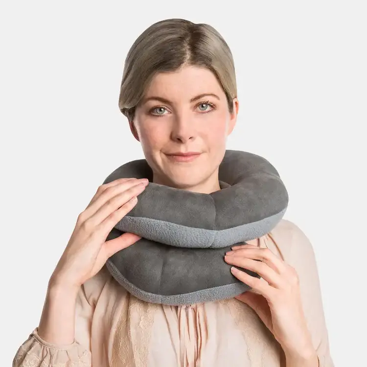 • Pillow with interlocking ends keeps pillow in place and prevents head from falling forward, no chin drop, no neck strain
