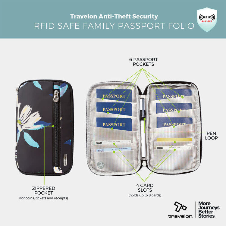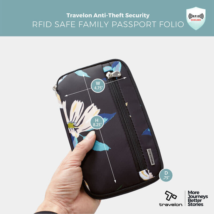 Travelon RFID Blocking Family Passport Wallet- Midnight Floral