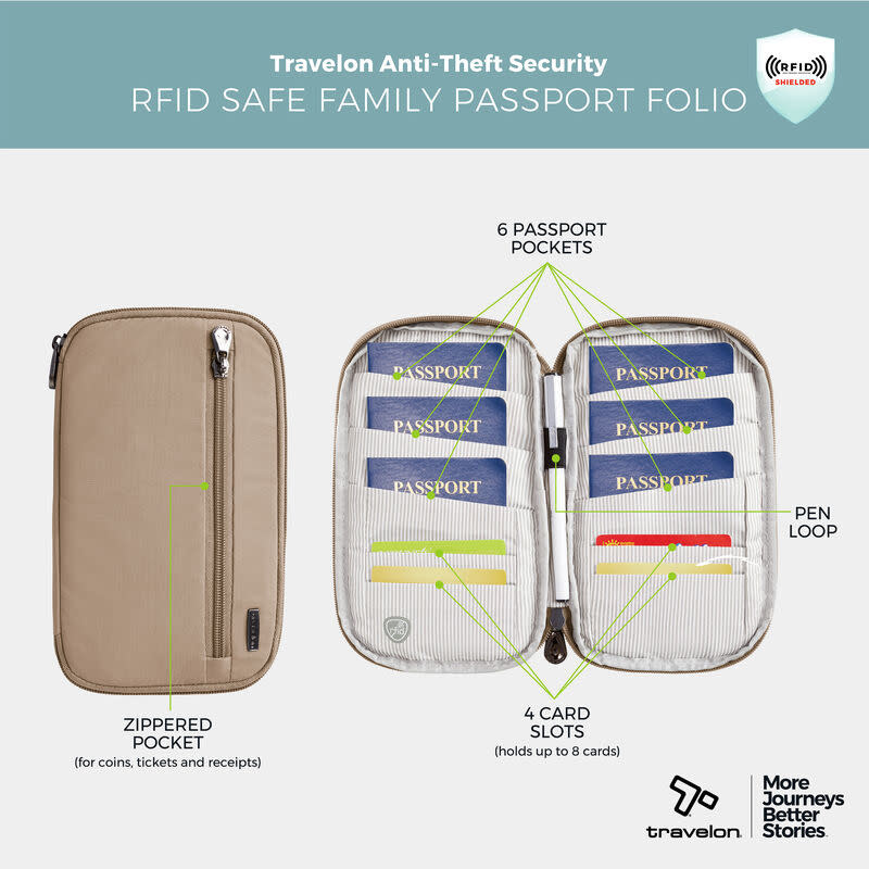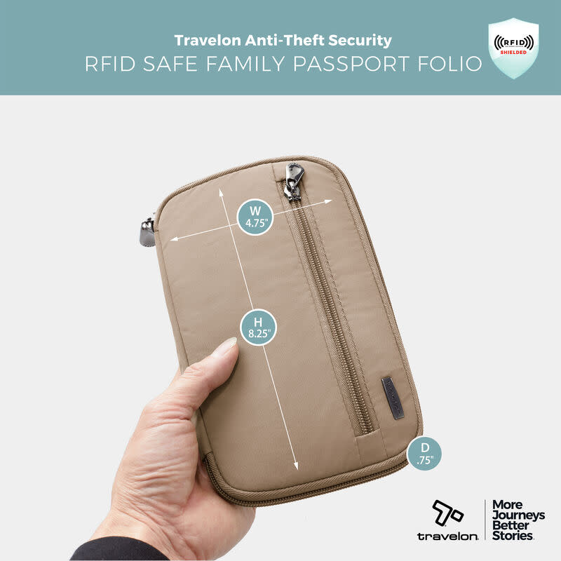 Travelon RFID Blocking Family Passport Wallet- Sable