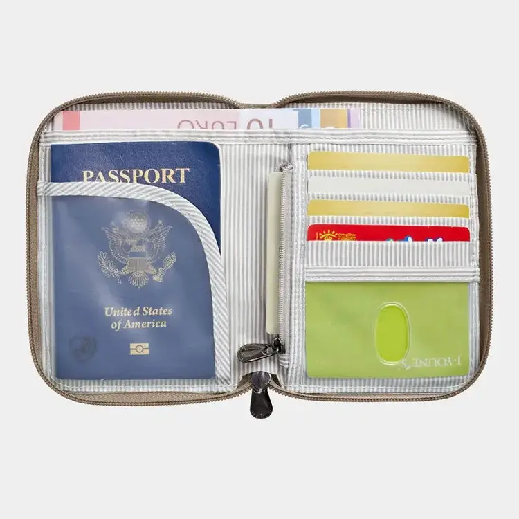 • INTUITIVE ORGANIZATION & DEDICATED PASSPORT COMPARTMENT is at the heart of this wallet. More than meets the eye, designed that keeps your passport visible for TSA and Customs Agents thanks to a see-through, RFID blocking shield; 1 ID window for a Global Entry card, Drivers License or Medical ID; 1 zippered pocket for coins; 4 card slots; 2 currency pockets; and 1 pen slot. Additionally, holds mobile phone(s), an international license, and a vaccine card.