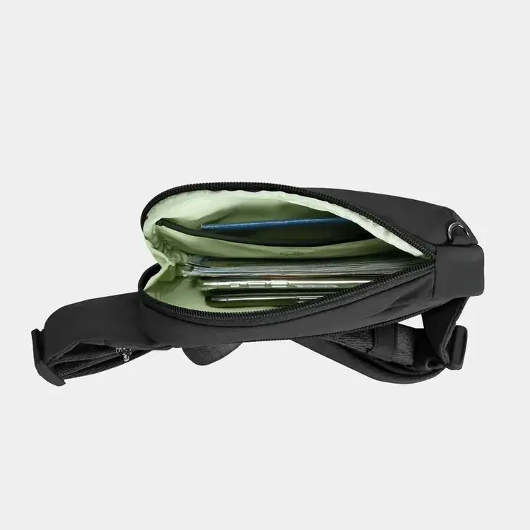 • You can roam at-ease, and hands-free. This Compact Sling has a 5-Point Anti-Theft security system built-in with: Slash-resistant body and straps; Locking compartments; Lock-down hardware and RFID blocking pockets and slots for passports and cards. This prevents thieves from breaking into, snatching your bag, or scanning your identity.