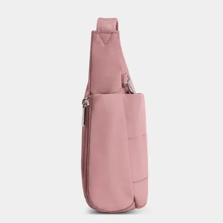 • A stylish front-locking zippered pocket holds quick grab items, and a clever rear mobile phone drop pocket makes travel easy-peasy. This soft-to-the-touch nylon bag is also highly durable yet ultra-lightweight so it won’t slow you down. This bag comes in colors that pair with any wardrobe, for endless looks.