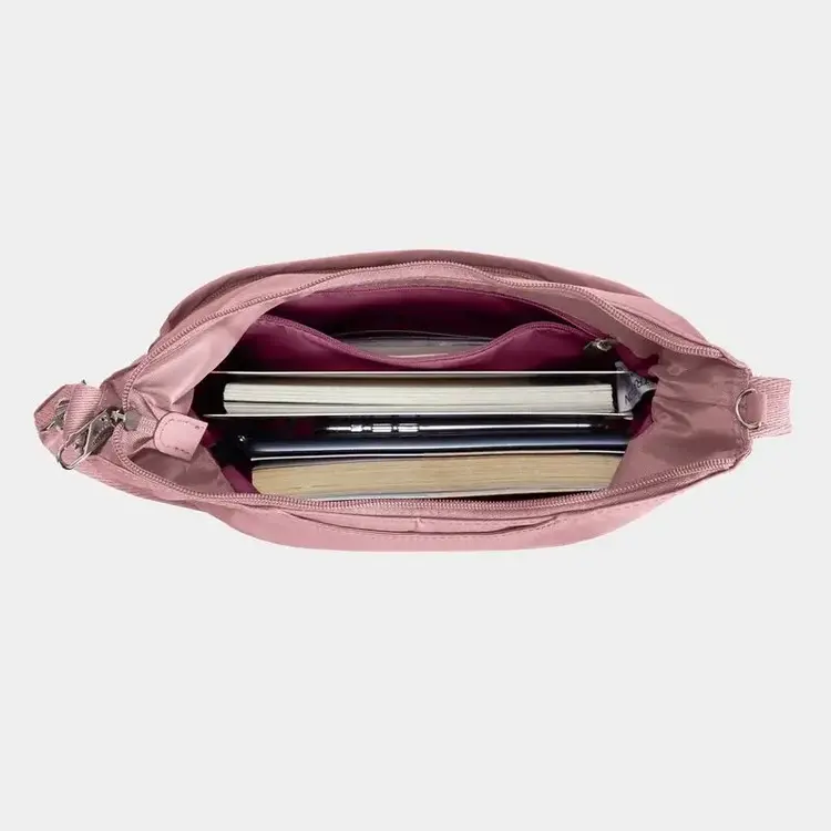 Roam-at-ease, and hands-free! This Medium Crossbody has a 5-Point Anti-Theft security system for true safety: Slash-resistant body and straps; Locking compartments; Lock-down hardware and RFID-blocking zippered pocket for passports and cards. Combined, prevents thieves from breaking into your bag, snatching your bag, or scanning your identity.