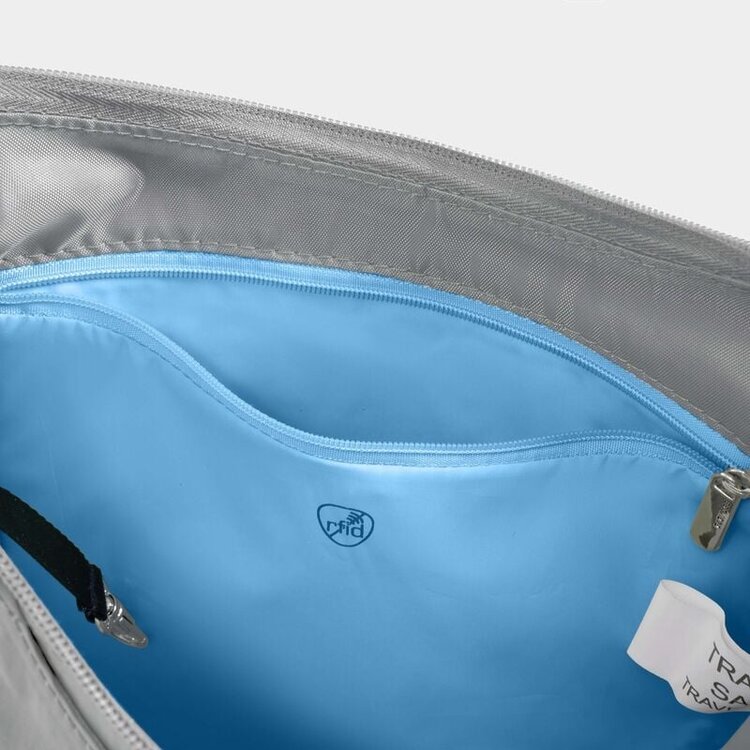 • Organization is the nerve center of this bag with purposeful compartments and pockets that keep everything you need within easy reach. The locking main compartment has a 4.25-liter capacity and includes a large zippered RFID-blocking pocket for cards, passports, and a tethered key clip.