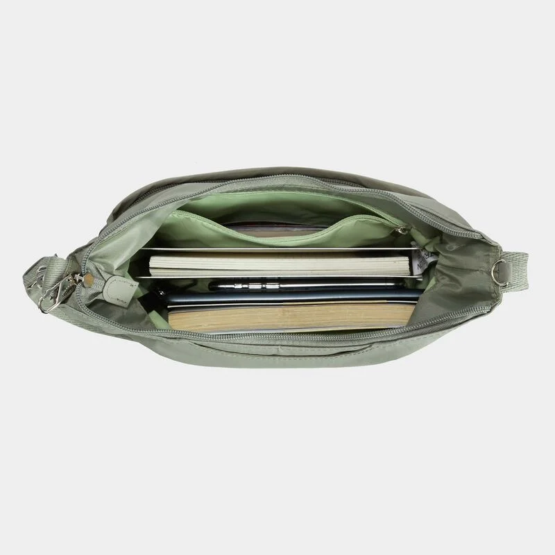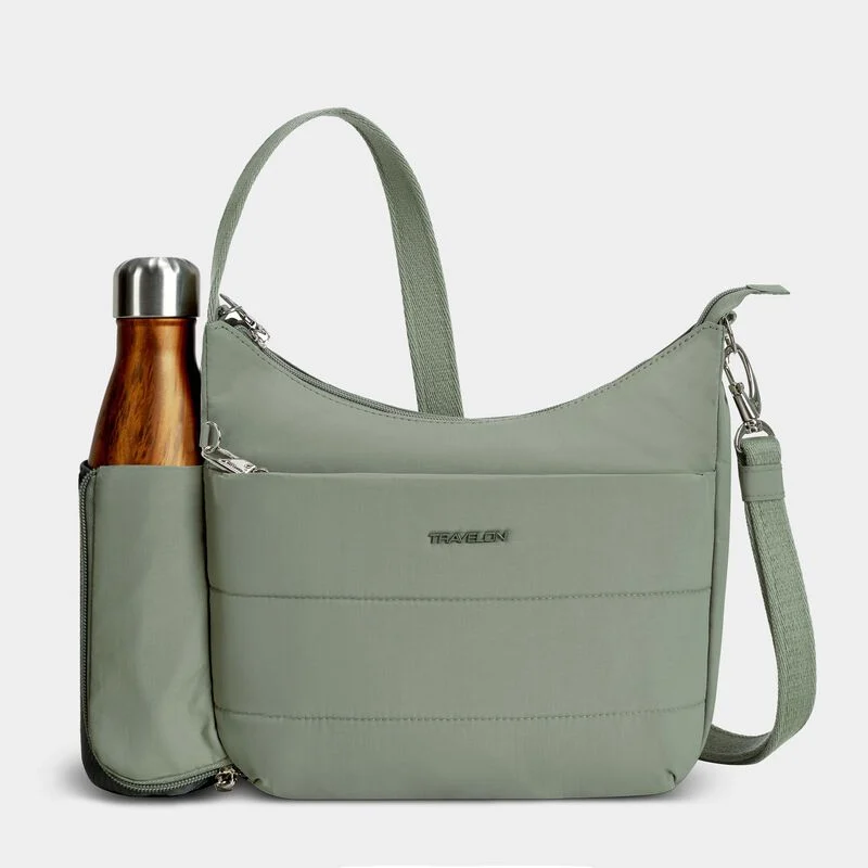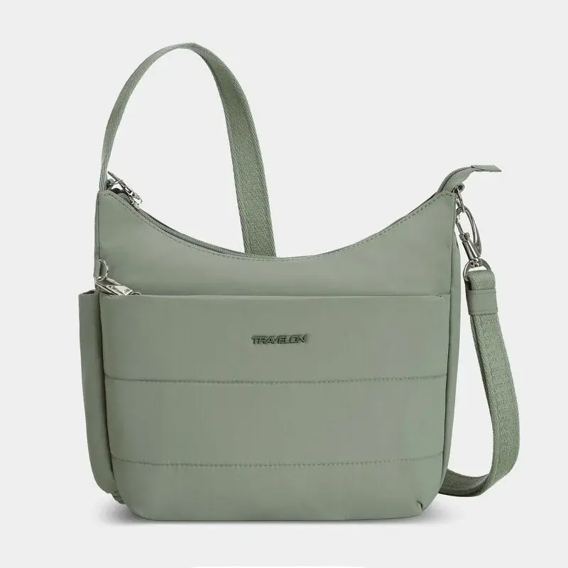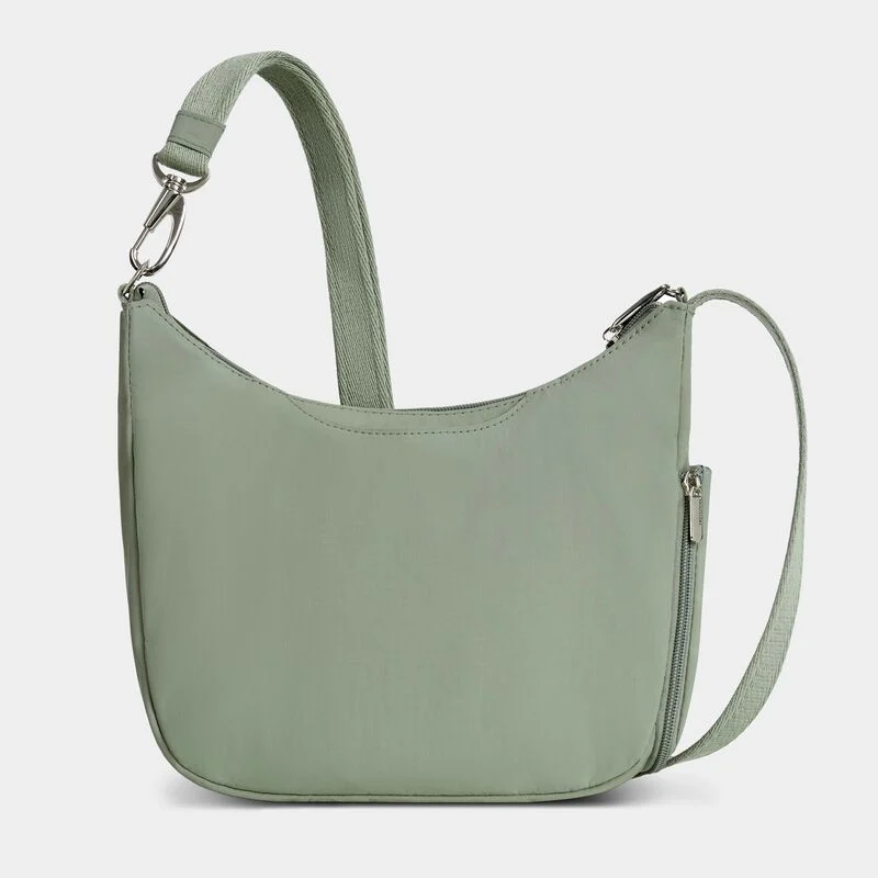 Roam-at-ease, and hands-free! This Medium Crossbody has a 5-Point Anti-Theft security system for true safety: Slash-resistant body and straps; Locking compartments; Lock-down hardware and RFID-blocking zippered pocket for passports and cards. Combined, prevents thieves from breaking into your bag, snatching your bag, or scanning your identity.