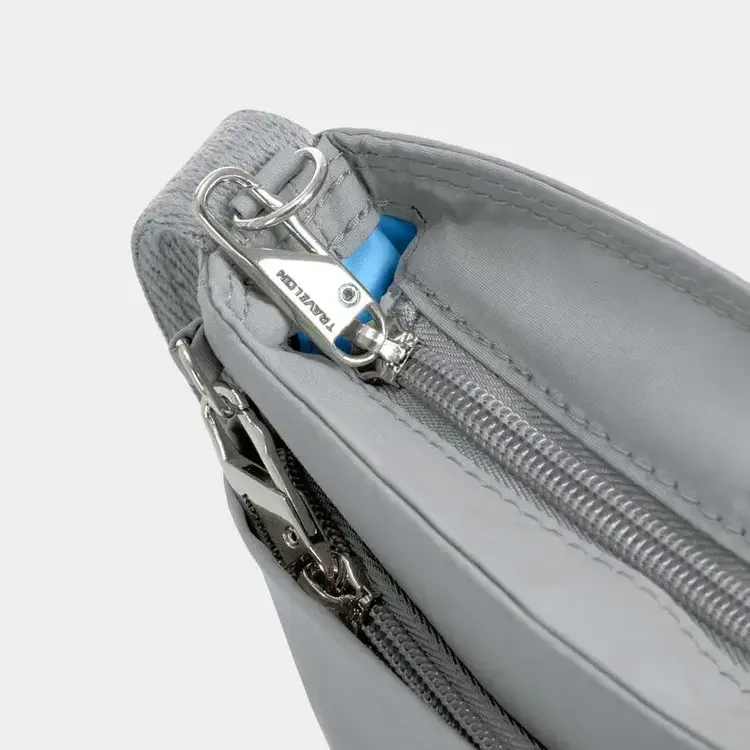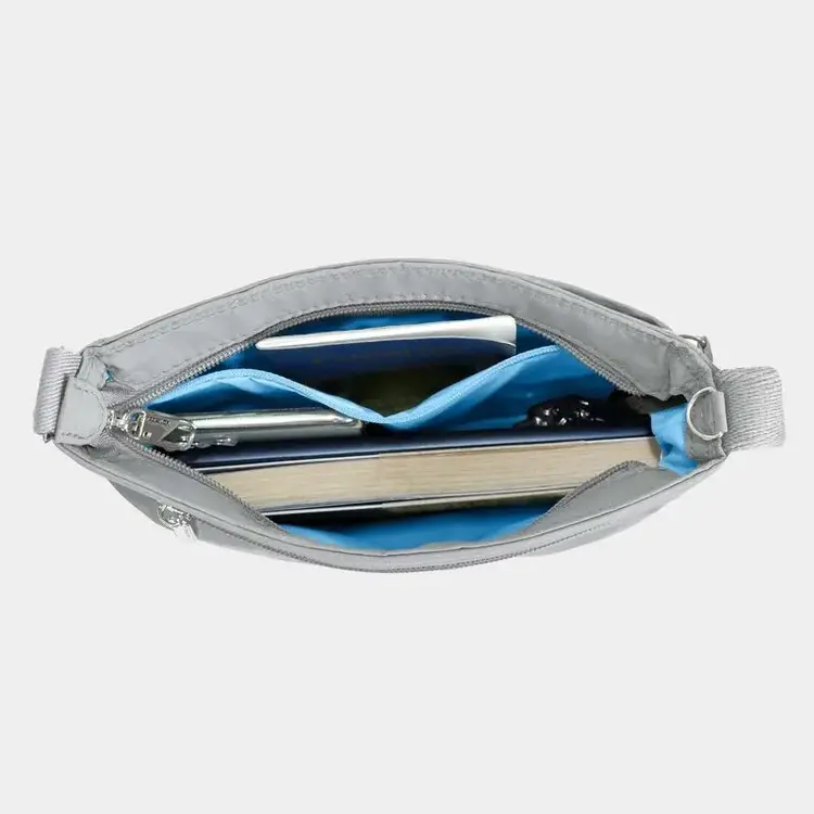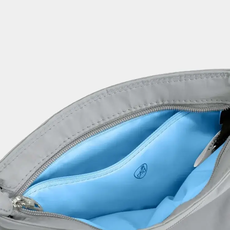 • A stylish front shows a slash pocket and a locking pocket. In the rear you’ll find a clever hidden zippered pocket for items and documents you want to hold close. Soft to the touch nylon bag is also highly durable yet ultra-lightweight so it won’t slow you down.