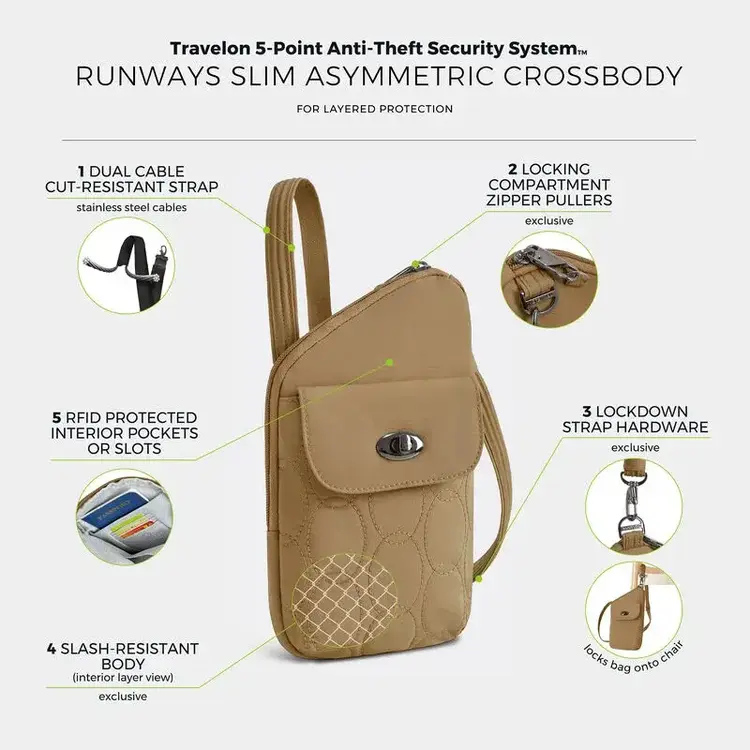 Travelon Runways Anti-Theft Slim Asymmetric Crossbody - Latte