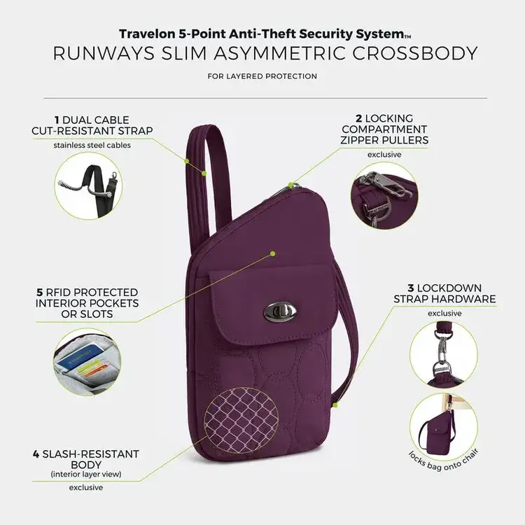 Travelon Runways Anti-Theft Slim Asymmetric Crossbody - Plum