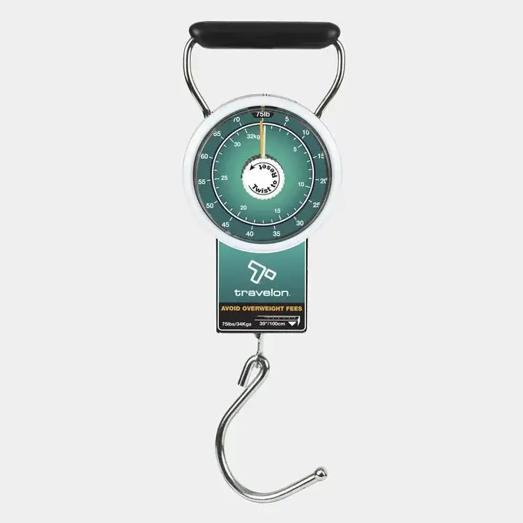 The Travelon Stop-n-Lock Luggage Scale offers a simple, affordable way to eliminate packing guesswork and avoid overweight baggage fees. Its patented Stop-n-Lock feature tracks the bag’s weight with the main hand, then the second-hand locks at the final weight so you can set the suitcase down to read the dial comfortably. A built-in tape measure helps ensure your bag isn’t oversized. Pack it on every trip so you never worry about surprise fees on the way home.