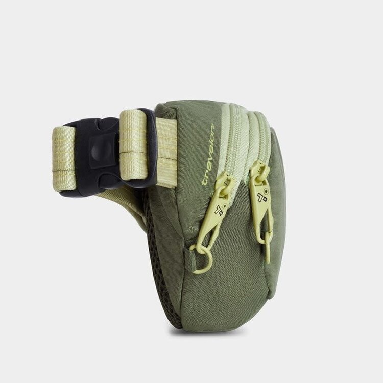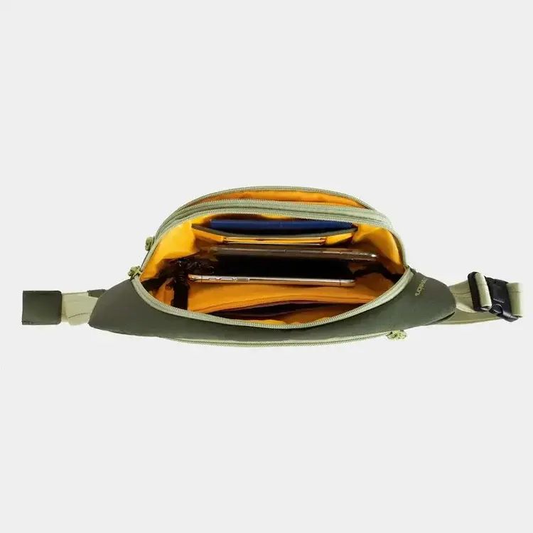 • This durable 11"W x 6"H x 2.5"D waist pack has a roomy 1.5 cubic liter locking main compartment to hold a mobile phone and other essentials. Interior organization includes: An RFID blocking passport drop pocket and 2 card slots protects you from identity theft; a zippered pocket wrangles the small stuff, plus, a tethered key clip that helps prevent search and rescue missions for car and house keys.