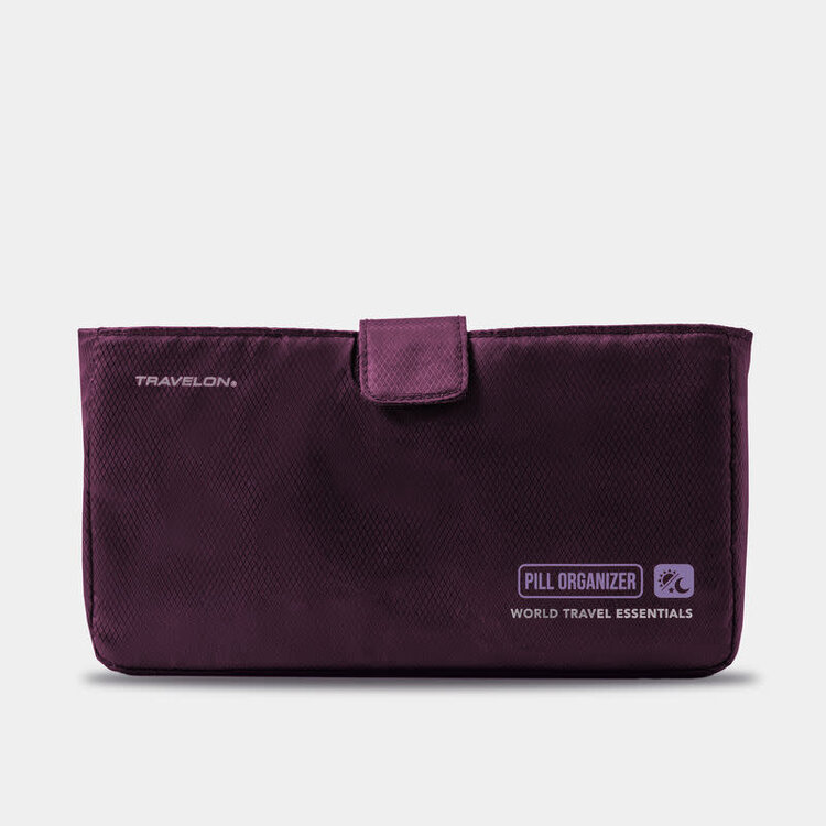Travelon World Travel Essentials 7-day am/pm Push Button Pill Case- Blackberry