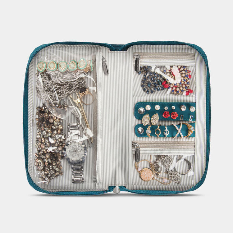 Keep treasures organized and protected in the Travelon Jewelry Case. Features compartments for all your favorite baubles. A zip closure keeps everything neatly tucked inside. Fits it in a purse or suitcase.