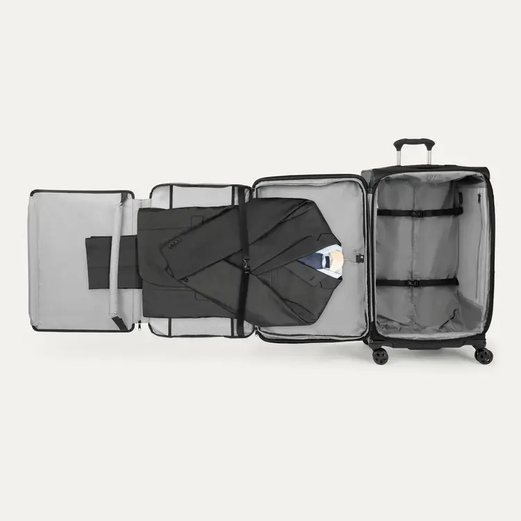 Arrive without a crease using the removable fold-out suiter, designed to protect hanging clothes from wrinkles. Interior hold-down straps, water-resistant storage, and multiple accessory pockets add organization, keeping everything where it belongs and easy to find.