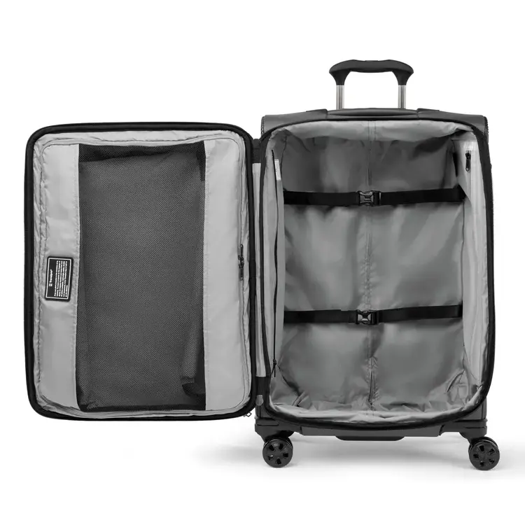 This medium-sized check-in spinner’s PrecisionGlide® System ensures precise control and effortless roll on eight ultra-durable, 360° MagnaTrac® self-aligning spinner wheels led by a four-stop, height-adjustable PowerScope Handle with comfortable Contour Grip.