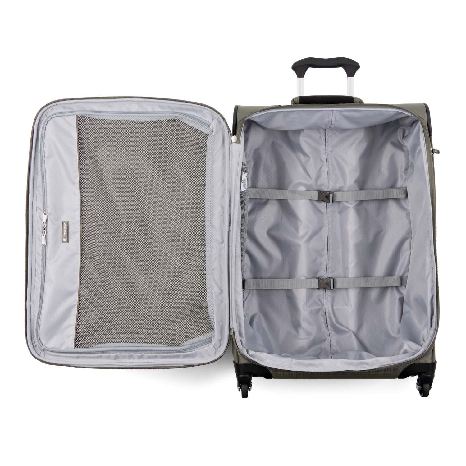 • The lightweight & ultra-durable Maxlite® 5 25-inch Softside Expandable Spinner is ideal for medium to long trips with its convenient zippered expansion feature that provides additional packing capacity when you need it. For effortless mobility and easy handling, this handsome suitcase features four 360° Spinner wheels and a dual-position adjustable PowerScope Lite handle with patented comfort Contour Grip. This elegant checked baggage also includes a convenient front pocket for sundries, a full-length interior zippered lid pocket, a side accessory pocket, and a spacious interior with adjustable tie-down straps to keep all your packed items securely stowed.