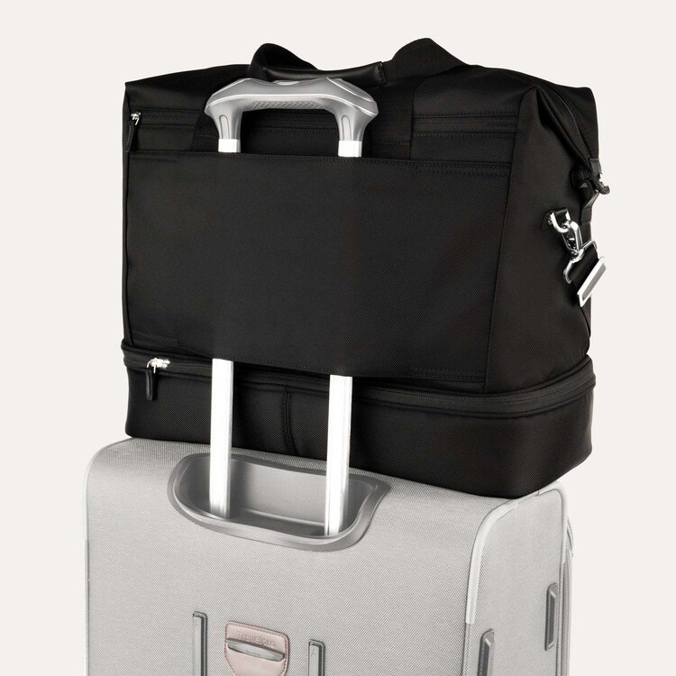 Designed for impressive adaptability with a removable bottom compartment, the Travelpro® Platinum® Elite Drop-Bottom Weekender makes an excellent gym bag, around-town commuter satchel, and an all-in-one travel carry-on.