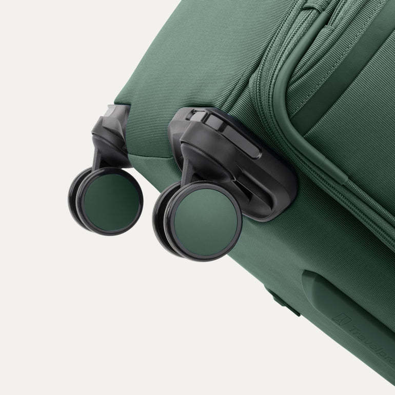 For long-term durability, this spinner is constructed with hardy YKK® zippers, rugged and stain-resistant exterior ballistic nylon fabric, and water-resistant ECOFAB™ interior lining made from 100% post-consumer recycled plastic bottles. The PrecisionGlide® System gives you precise control and effortless roll on eight ultra-durable, 360° MagnaTrac® self-aligning spinner wheels led by a sturdy, four-stop, height adjustable PowerScope Handle with a comfortable Contour Grip.