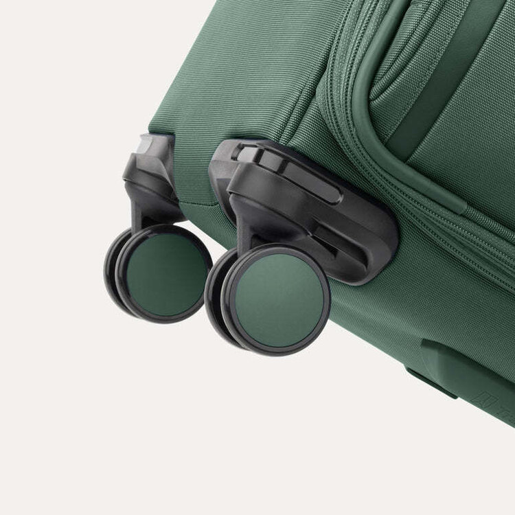 For long-term durability, this spinner is constructed with hardy YKK® zippers, rugged, stain-resistant exterior ballistic nylon fabric, and water-resistant ECOFAB™ interior lining made from 100% post-consumer recycled plastic bottles. The PrecisionGlide® System gives you precise control and effortless roll on eight ultra-durable, 360° MagnaTrac® self-aligning spinner wheels led by a sturdy, four-stop, height adjustable PowerScope Handle with a comfortable Contour Grip.
