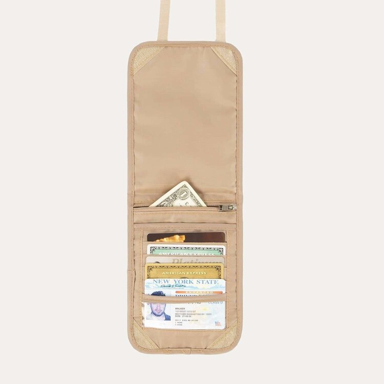 When travelling, keep tickets, passports, credit cards, and other travel essentials secure and close at hand with the safe and readily-accessible Travelpro® Essentials™ Security Neck Pouch. With its built-in Travelpro® ID TheftBlock™, this neck pouch protects credit cards and passports against identity theft scanners and features a flip open design with interior and exterior zippered pockets, multiple credit-card slots and a convenient clear-window ID slot on the inside. A breathable, padded backing allows you to comfortably wear the pouch under your clothing and hidden from view.
