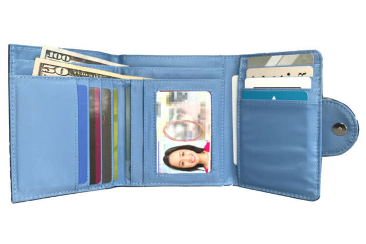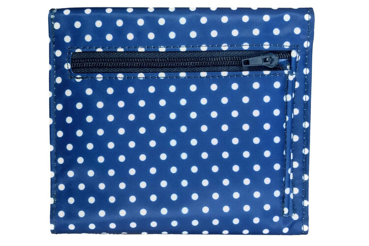 • This is almost a cross between the high capacity of our Monte Cougar wallet and an expanded version of our regular tri-fold wallet but it leans toward the tri-fold wallet side making it more compact. A good mid-sized wallet, this all-purpose tri-fold wallet holds about 25-30 plastic cards with two deep sections for your plethora of $100 bills, Whole Foods coupons and Saks Fifth Avenue receipts. The zippered compartment on the back of this tri-fold wallet is roomy enough for a large handful of change, and the small magnetic closure keeps the whole wallet securely shut when it's being jostled around in your bag or bouncing around on the bottom of your butt (yes it fits in male back pockets easily also). Crafted from ultra-thin, durable, machine-washable, nylon micro-fiber. P.s. trivia, Trixie was Speed Racer's hot girlfriend. *** Please note due to global supply issues both zippers and pulls may differ from the photos above. Features: