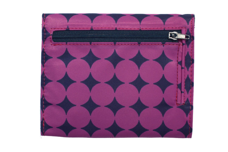 • This is almost a cross between the high capacity of our Monte Cougar wallet and an expanded version of our regular tri-fold wallet but it leans toward the tri-fold wallet side making it more compact. A good mid-sized wallet, this all-purpose tri-fold wallet holds about 25-30 plastic cards with two deep sections for your plethora of $100 bills, Whole Foods coupons and Saks Fifth Avenue receipts. The zippered compartment on the back of this tri-fold wallet is roomy enough for a large handful of change, and the small magnetic closure keeps the whole wallet securely shut when it's being jostled around in your bag or bouncing around on the bottom of your butt (yes it fits in male back pockets easily also). Crafted from ultra-thin, durable, machine-washable, nylon micro-fiber. P.s. trivia, Trixie was Speed Racer's hot girlfriend. *** Please note due to global supply issues both zippers and pulls may differ from the photos above. Features: