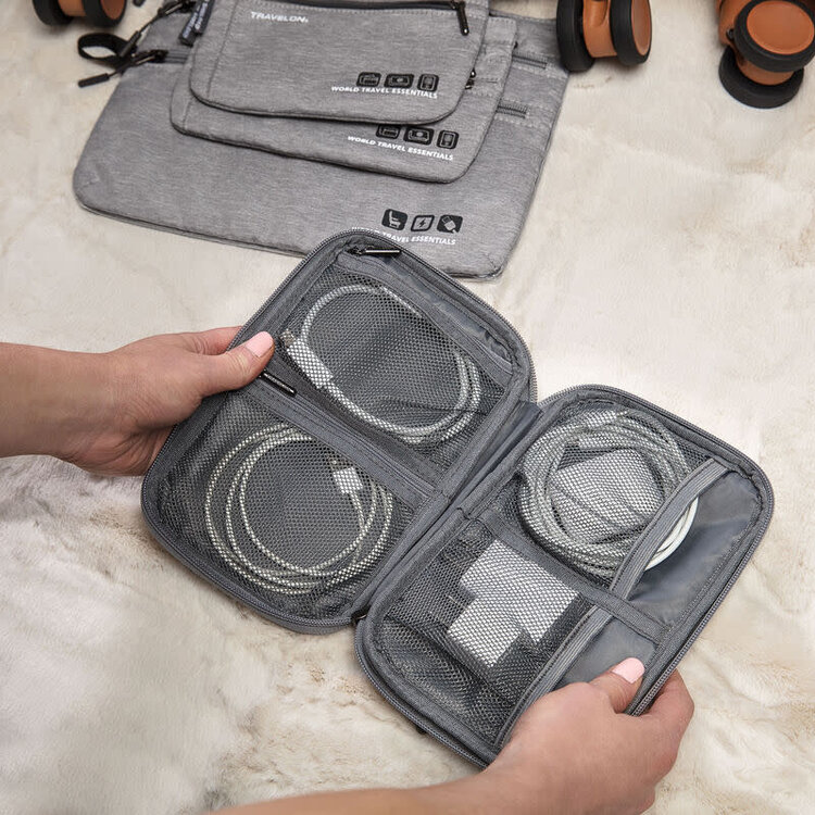 Travel without limits equipped with our advanced series World Travel Essentials (WTE), gear that solves packing problems. Our premium Tech Organizer is thoughtfully portable, creates more ordered space and takes up the least amount effort on your journey. Durable material is weatherproof and wipeable. World Travel Essentials redefines packability with some serious capacity gear that keeps you going without compromise.